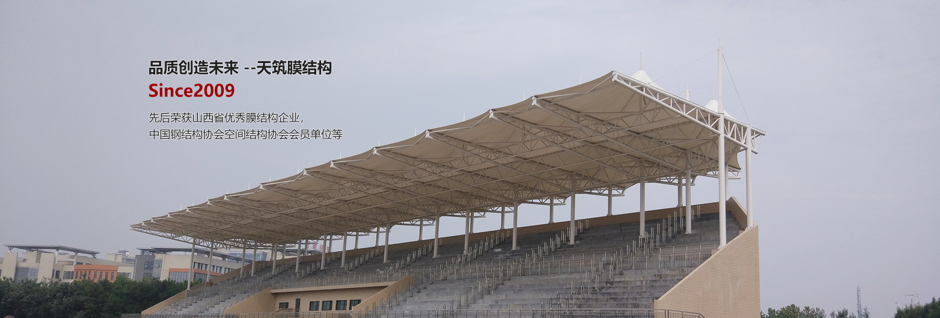 太原天筑膜結(jié)構(gòu)技術(shù)有限公司主要從事膜結(jié)構(gòu)工程的方案設(shè)計(jì)、結(jié)構(gòu)設(shè)計(jì)、靜動(dòng)力計(jì)算分析、膜材的裁剪設(shè)計(jì)、膜材的加工制作安裝、鋼構(gòu)件的設(shè)計(jì)加工整體安裝及使用維護(hù),集科研開發(fā)與制作安裝為一體的科研生產(chǎn)型企業(yè)。服務(wù)范圍涉及電動(dòng)車/自行車車棚、汽車停車棚、廣場(chǎng)公園景觀張拉膜、新能源充電樁膜結(jié)構(gòu)雨棚、體育場(chǎng)看臺(tái)膜結(jié)構(gòu)、加油站收費(fèi)站膜結(jié)構(gòu)大棚、表演舞臺(tái)膜結(jié)構(gòu)雨棚、廊道遮陽棚、永久性膜結(jié)構(gòu)建筑遮陽棚、污水池膜結(jié)構(gòu)封閉、充氣膜等膜結(jié)構(gòu)工程的設(shè)計(jì)、制作加工安裝、售后維修服務(wù)。公司立足太原,輻射華北、華中地區(qū)數(shù)十省,是華北地區(qū)專業(yè)性、規(guī)模型的膜結(jié)構(gòu)工程企業(yè)之一。公司成立以來,組織承建了520余項(xiàng)近36萬平方米的膜結(jié)構(gòu)工程……
